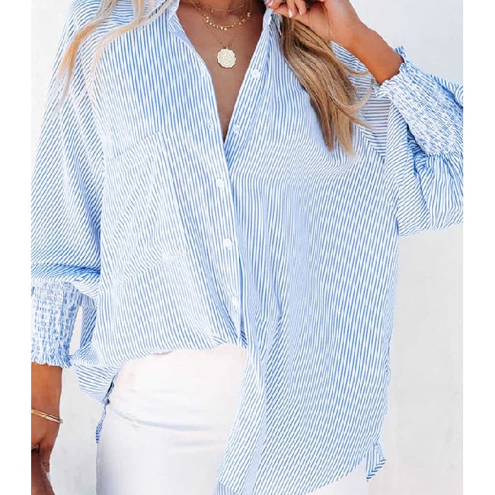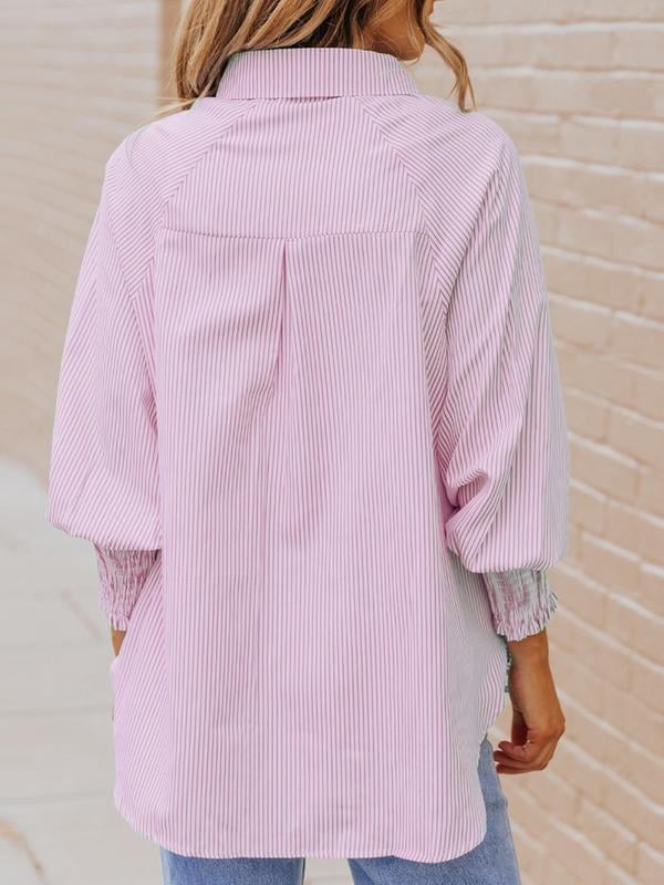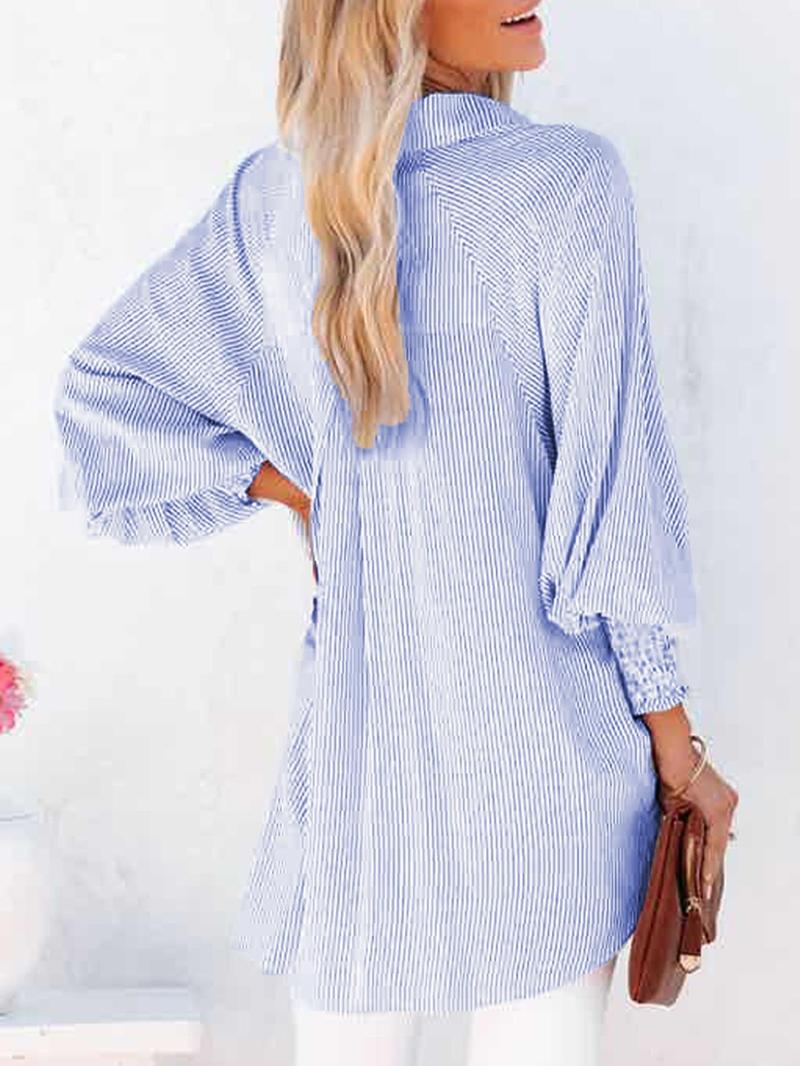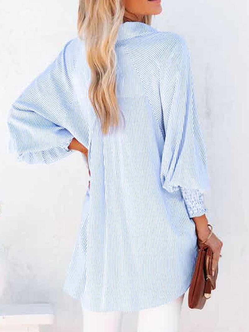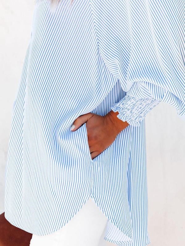 Mid-length shirt with striped lapel and oversized drawdown sleeves