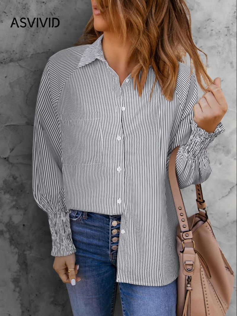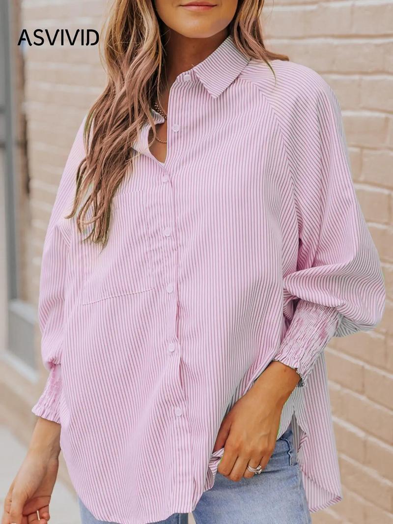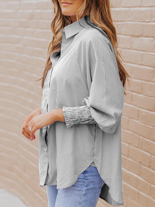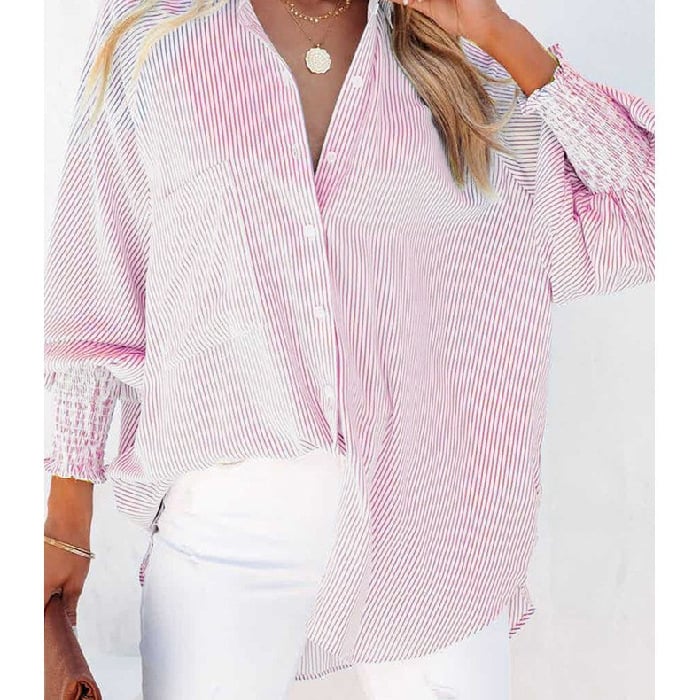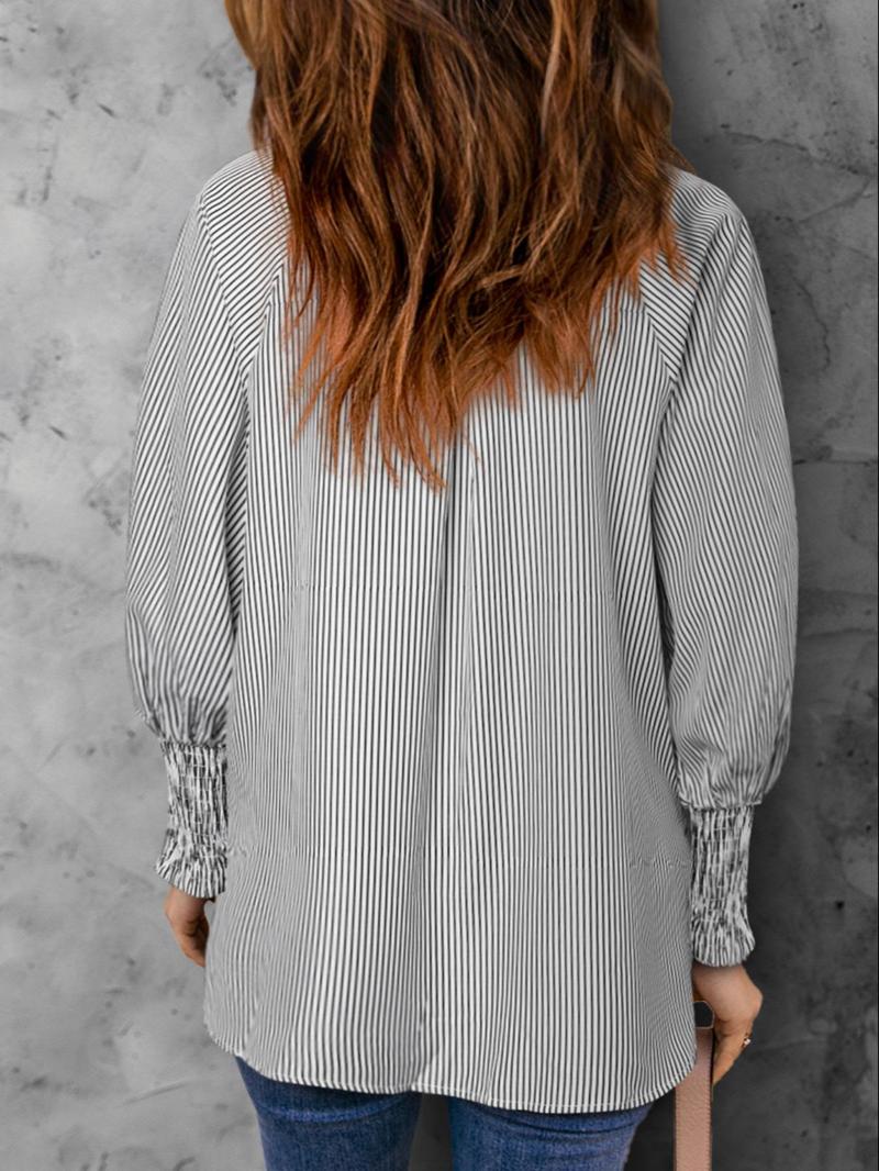 Mid-length shirt with striped lapel and oversized drawdown sleeves